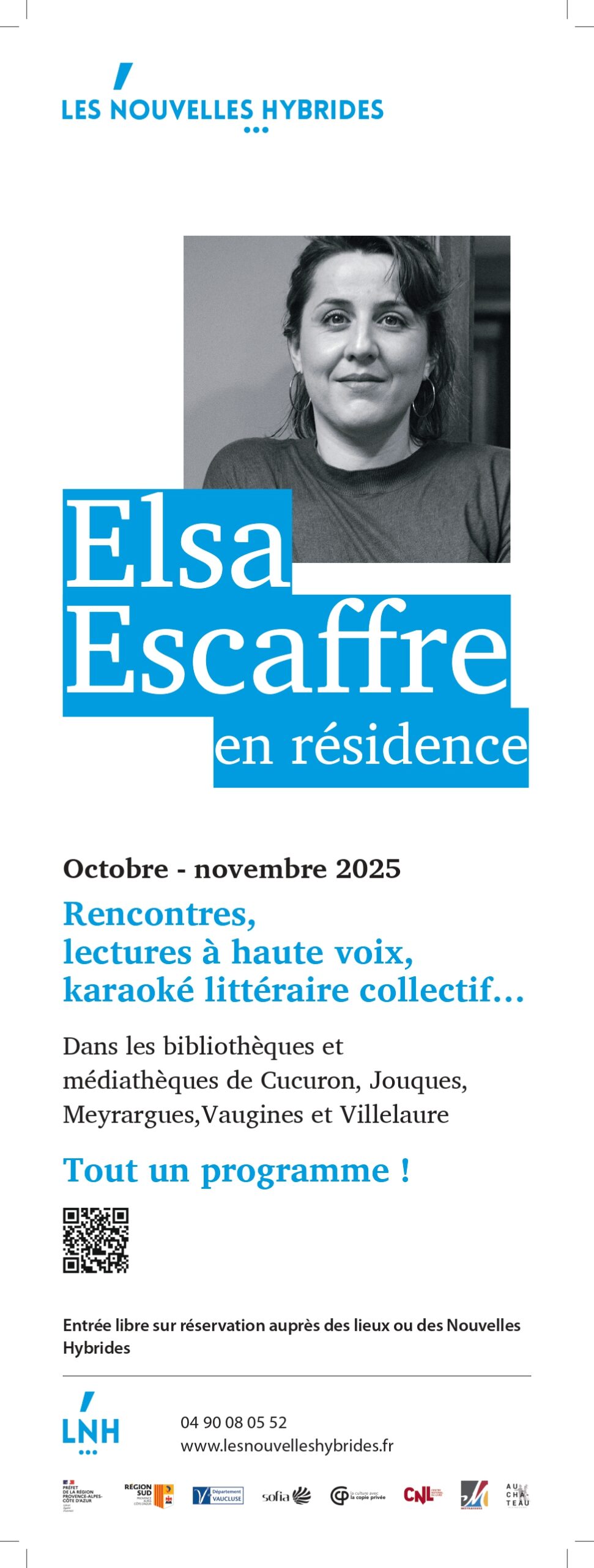 Plasticienne et autrice, Elsa Escaffre est en résidence d’écriture en octobre et novembre aux Nouvelles Hybrides. Elle vient travailler sur son prochain roman en cours d’écriture, PPAF – Portrait picaresque de l’artiste flambée, une aventure burlesque, comique aux accents de polar où les clichés du monde artistique contemporain sont explorés, décortiqués.